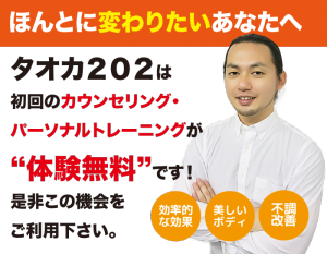 タオカ202では、体の歪み、姿勢、骨盤など、バランスを整え改善していく指導をしています。